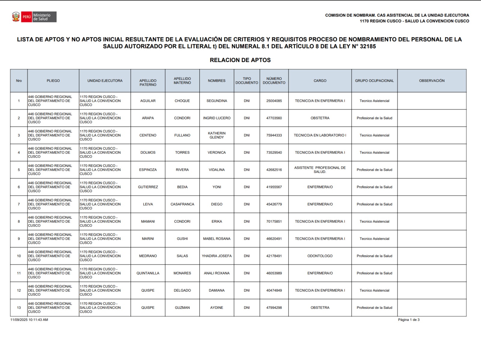 Resultados del proceso de Autoevaluación de los Establecimientos de Salud y Servicios médicos de Apoyo de la RSSLC 2024